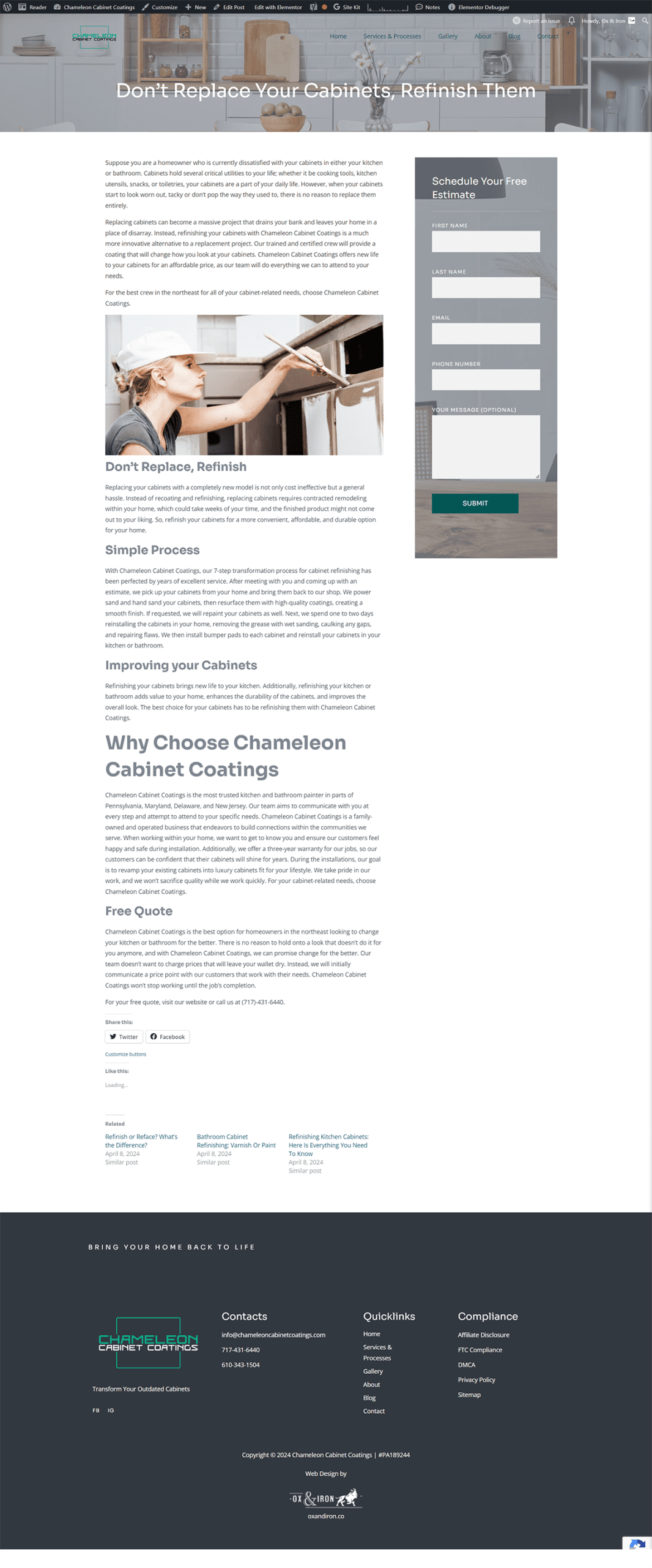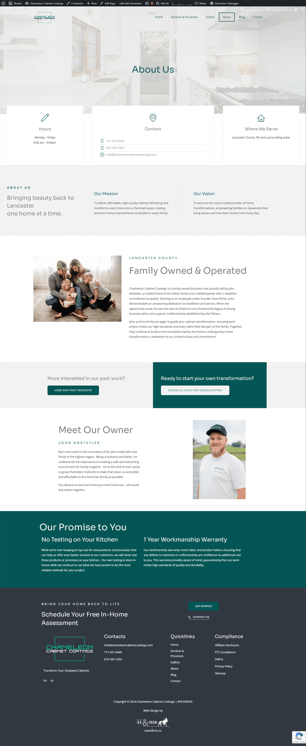 Chameleon Cabinet Coatings is a family-owned business in Lancaster County, PA, owned by John Hostetler, a skilled painter with a steadfast commitment to quality.