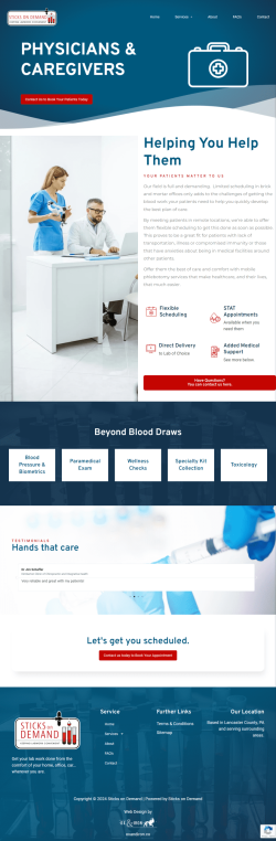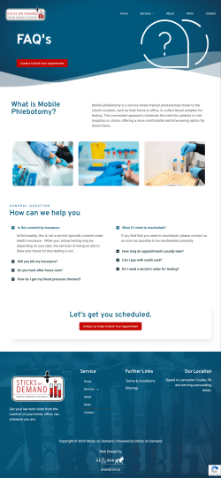 Sticks on Demand offers premier mobile phlebotomy services in Central Pennsylvania, delivering stress-free and accurate blood draws at clients’ homes or offices. Founded by Kimberly Smith, with over 19 years of experience, they ensure personalized and compassionate care, enhancing healthcare convenience and accessibility. Serving physicians, senior care facilities, wellness centers, and busy professionals, Sticks on Demand is committed to exceptional patient care and flexible scheduling.