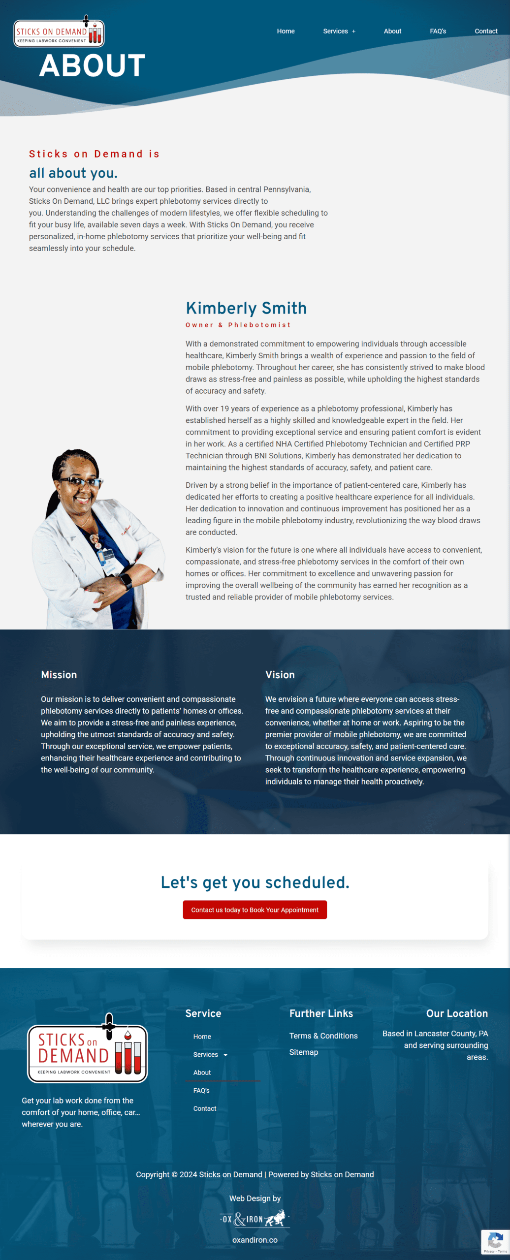 Sticks on Demand offers premier mobile phlebotomy services in Central Pennsylvania, delivering stress-free and accurate blood draws at clients’ homes or offices. Founded by Kimberly Smith, with over 19 years of experience, they ensure personalized and compassionate care, enhancing healthcare convenience and accessibility. Serving physicians, senior care facilities, wellness centers, and busy professionals, Sticks on Demand is committed to exceptional patient care and flexible scheduling.