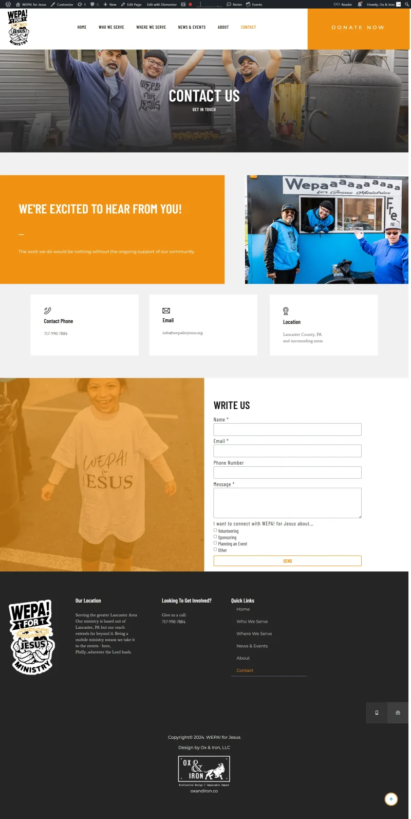 WEPA! for Jesus is a mobile street ministry meeting the needs of widows, orphans, and the homeless in Lancaster, PA and surrounding areas.